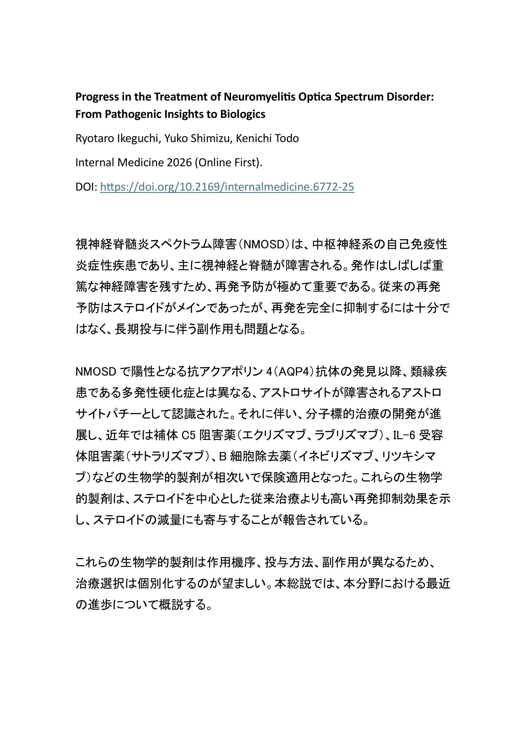 池口亮太郎先生の総説がInternal Medicineに掲載されました