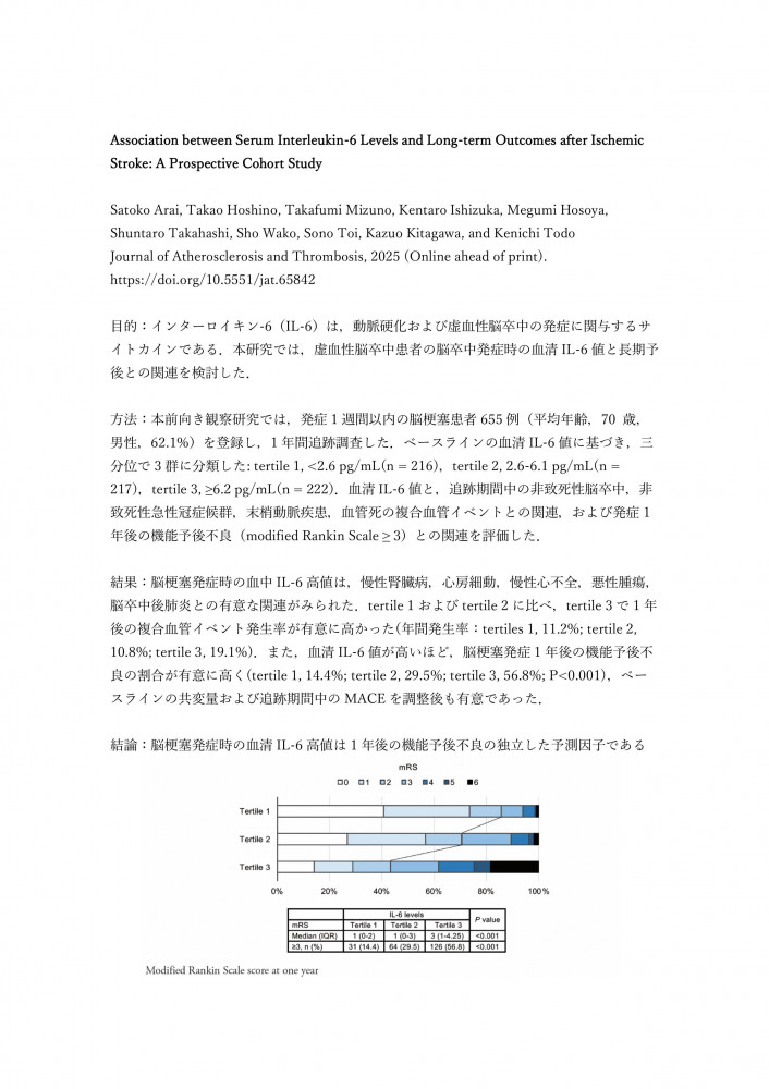 新井里子先生の論文がJournal of Atherosclerosis and Thrombosisに掲載されました。